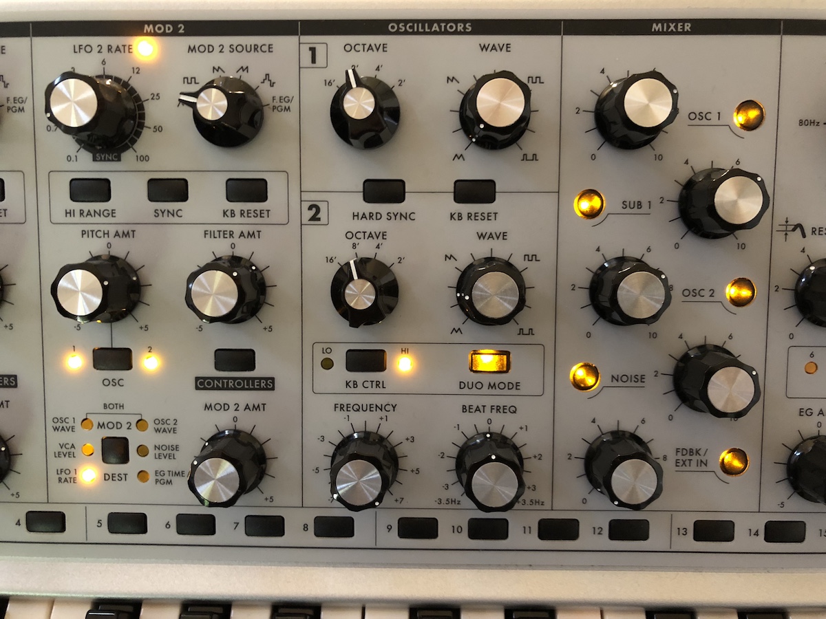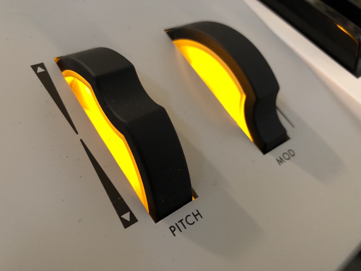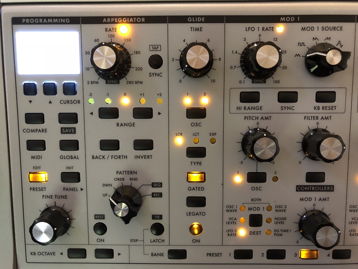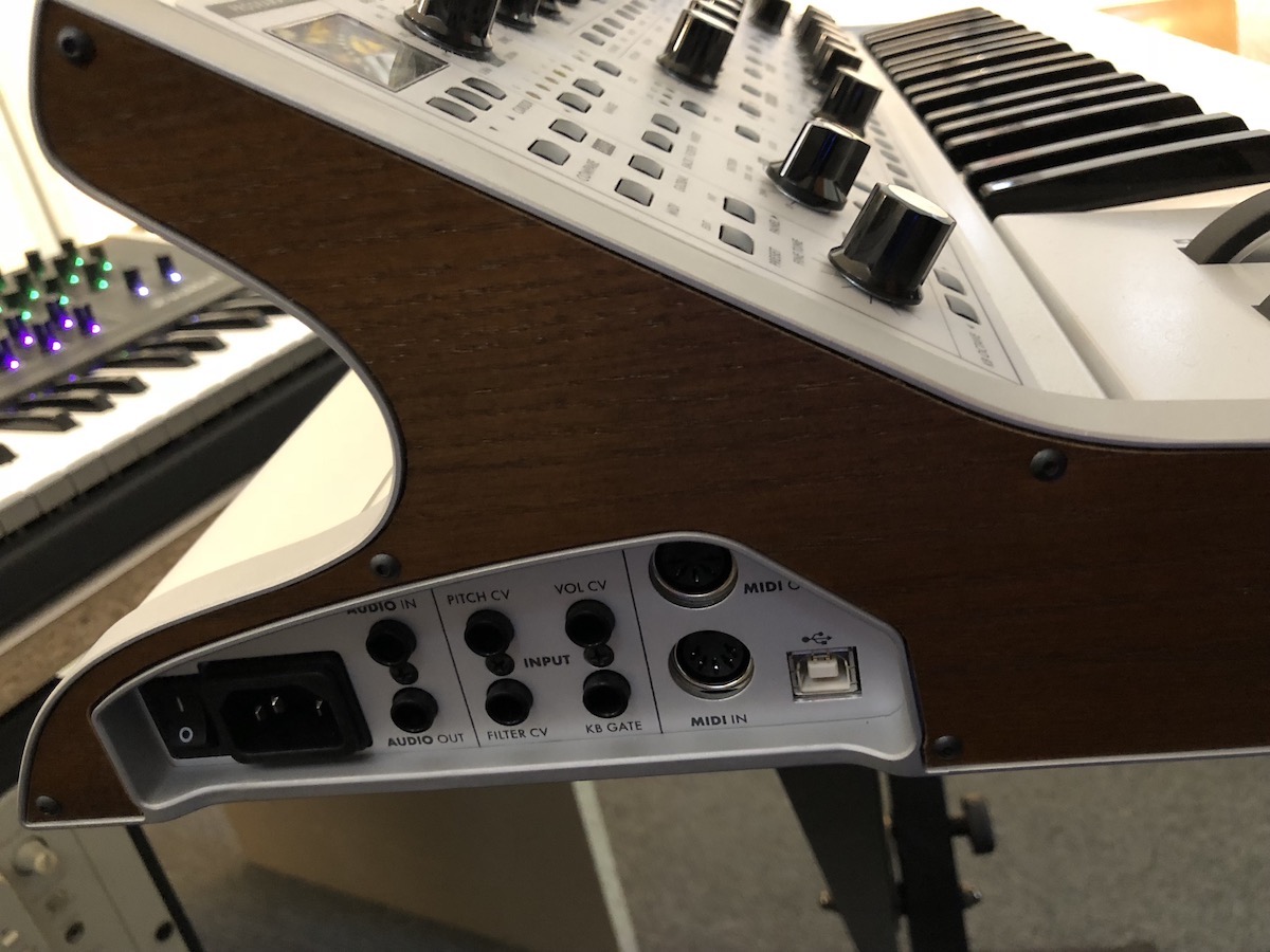 Boven de toetsen bevindt zich de step-sequencer. De knoppen daarvan dubbelen ook als preset-keuzes, waarbij je uit 16 banken van 16 geluiden kunt kiezen. De overige knoppen zijn netjes gerangschikt waardoor je snel je weg vindt als je klanken wilt aanpassen of maken. Er zijn afgebakende secties voor filter, envelopes en oscillatoren. De knoppen voelen stevig aan, zitten op voldoende afstand van elkaar en de teksten zijn goed afleesbaar. De pitch en modulatiewielen zijn verlicht, en de synthesizer is mooi afgewerkt met houten zijpanelen.