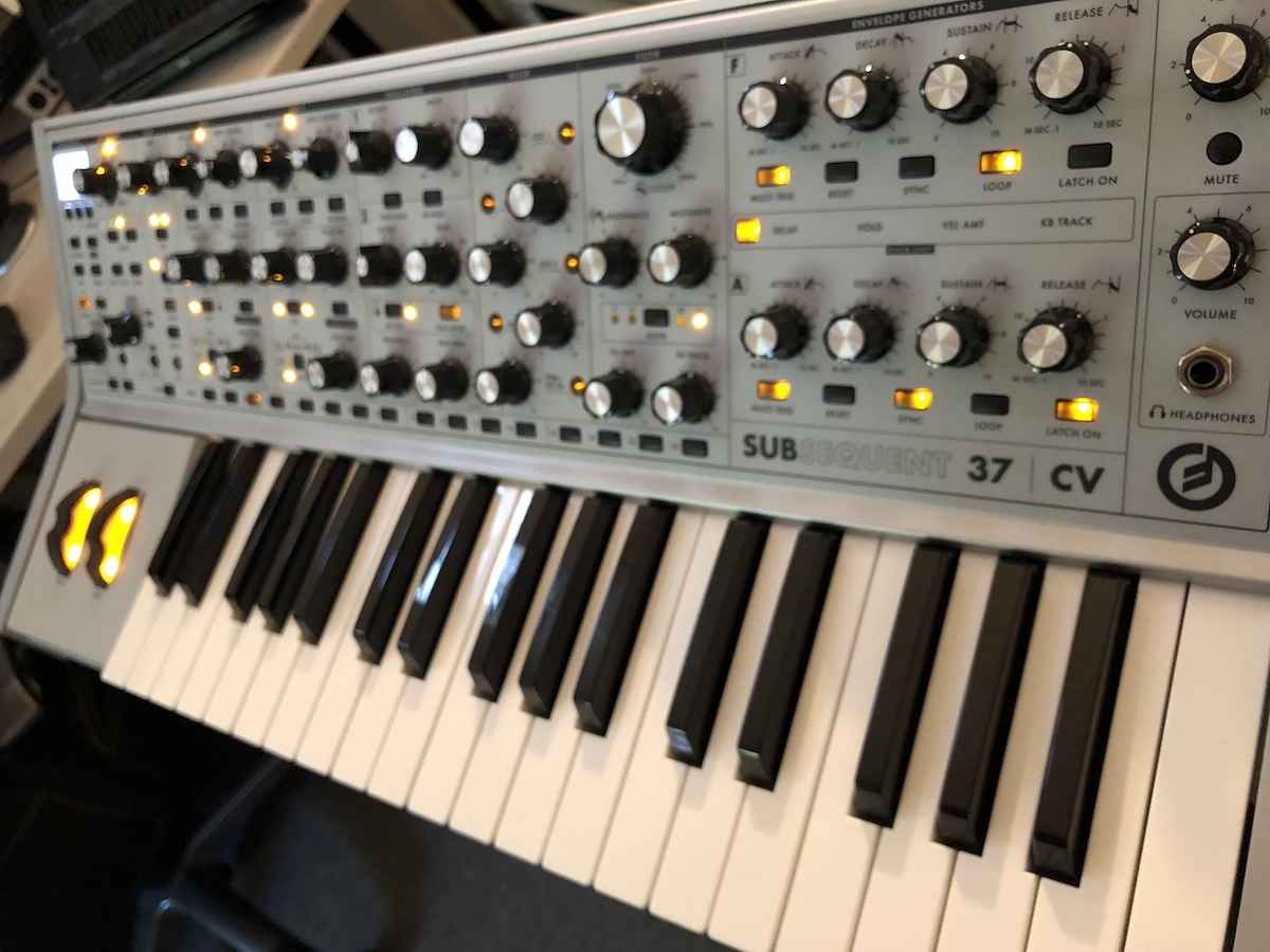 De Moog Subsequent 37 CV is een monofone, analoge synthesizer. Uitgerust met twee oscillatoren met variabele waveshaping, een sub oscillator (blokgolf) en een ruisgenerator en externe audio-ingang.